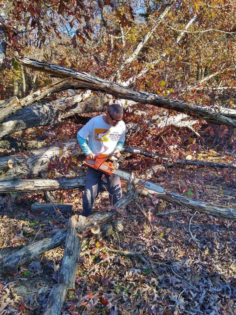 Though you cannot see much progress, I am already hard at work in the following picture. In fact, it took me 7 hours to clear all of the branches to the point seen in last picture. I had abundant help from my friend and his brother and their wives. They kept the area clear for me to cut non-stop.