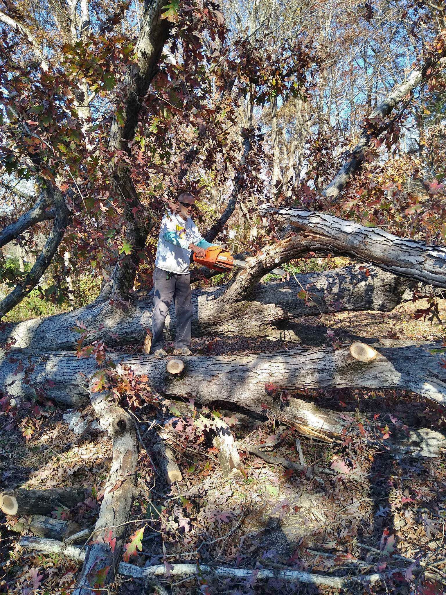 I took home a truck and trailer load of wood. The homeowner set aside wood to split later and 8′ to 15′ pieces to make a barrier for erosion control. A local welder/woodworker came and got the lower ten feet of trunk for boards. Not wasting resources does my heart good.