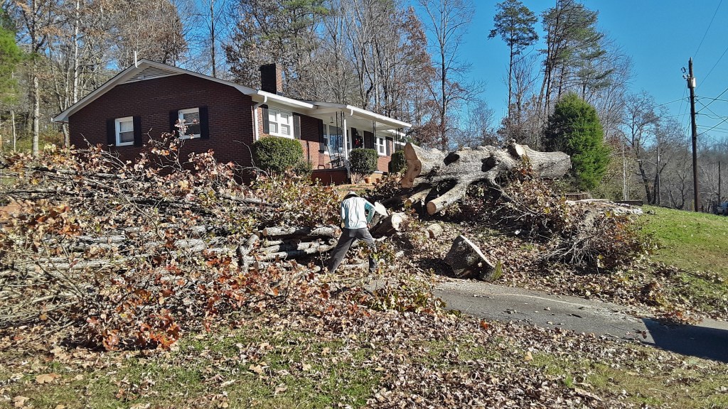 There were many forks up the tree because it had been severely topped some time long ago. Don’t trim more than a little from a tree, especially oak trees. It uglifies them and shortens their life.