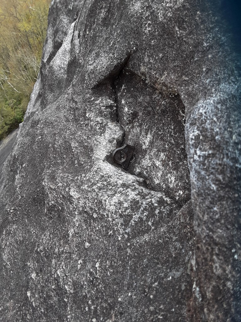 Being such a popular and old climb, I saw several old and broken pieces of pro along the route. The piton pictured is really old school.