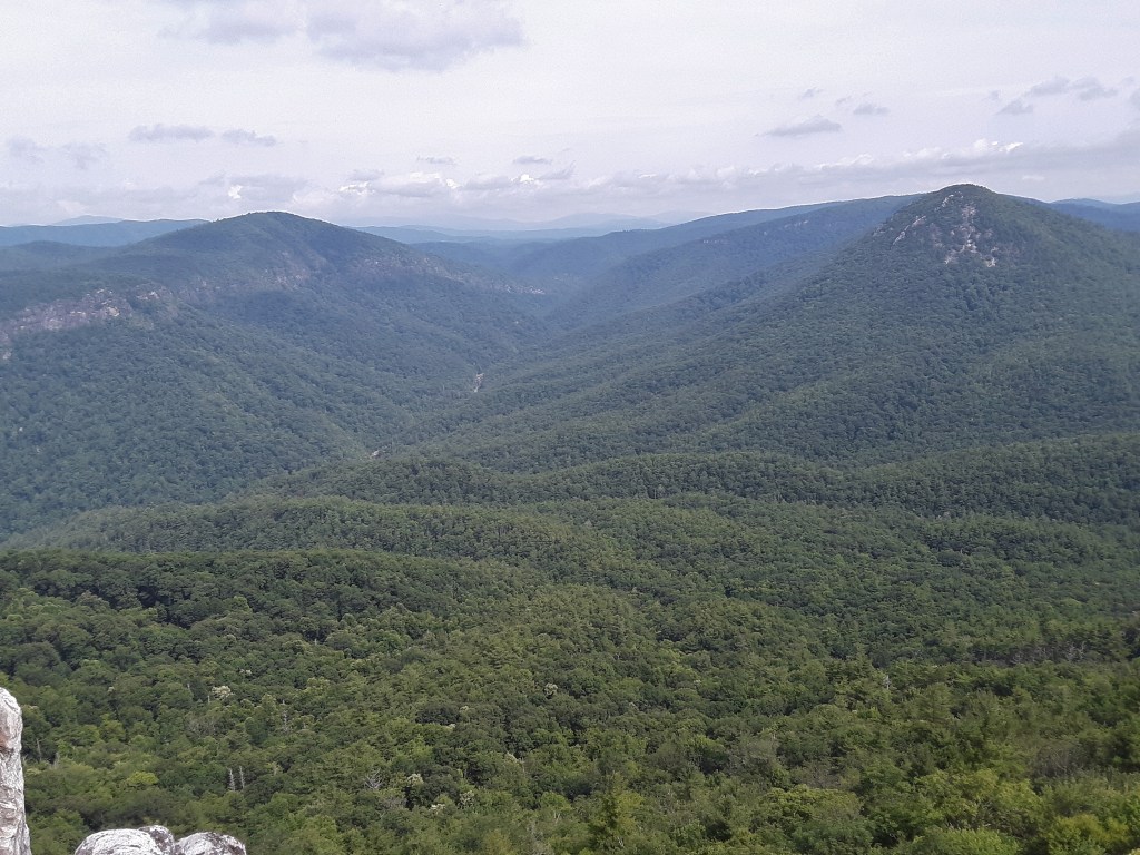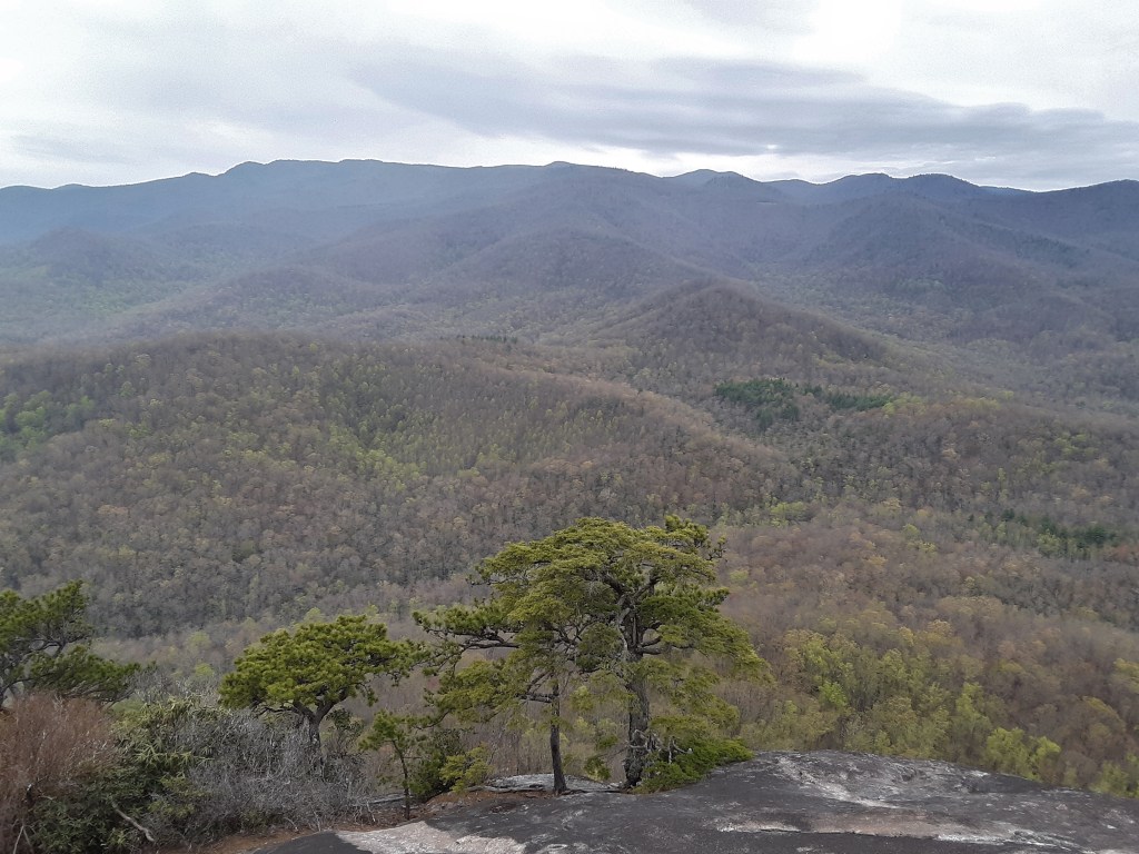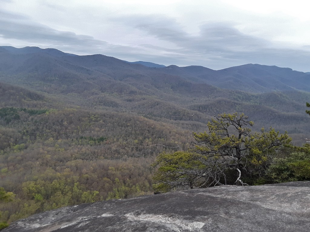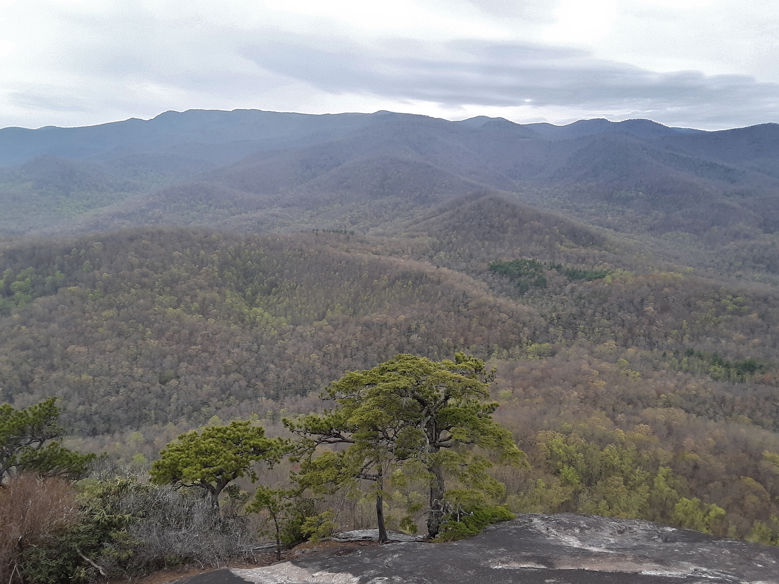 The view north was the best, straight upstream on Linville Gorge. You can see the river down below and Hawksbill on the right.
