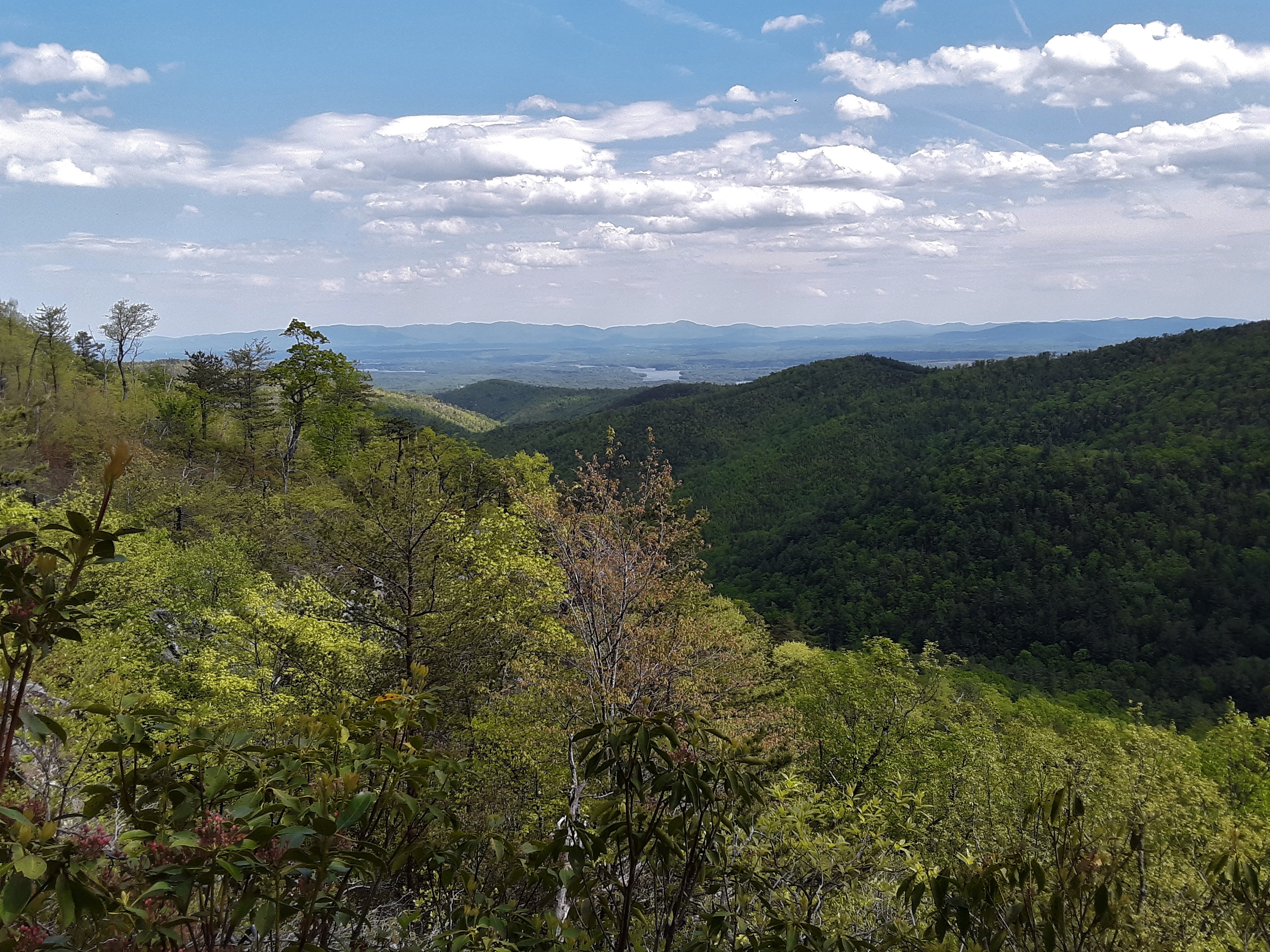The sun was out, the breeze was cool, the sky was clear, then variably and partly cloudy, and the climbing was good. Showing someone climbs on a crag is fun, and I even climbed one I had not climbed. We got in ten pitches in seven hours. It wasn’t a record pace, but we weren’t in a hurry. I never get tired of this view from the top of Black Fork Cliffs. It is in my county and yet it seems worlds apart, so secluded and isolated.