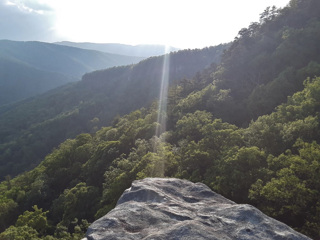 I had never been to Hidden Valley climbing area north of Abingdon, Virginia. Not knowing what I was getting into, I bought a climbing guide and researched the climbs that I wanted to attempt. The line of cliffs running near the top of the ridge has a rich climbing history. There are moderate climbs, but many are stout. It is so good to have climbing partners who will give it a try. We climbed a 5.8+, two 5.7’s, and a 5.10a. As I gain my confidence back after several years off, I may try some a bit harder, but safety for me and my partners is key. It has solid sandstone with many varying feature for interesting and challenging climbing. It was such a beautiful day and the drive was shorter than the others we have gone to. I plan to go back and explore more of this area. We had a very good time.