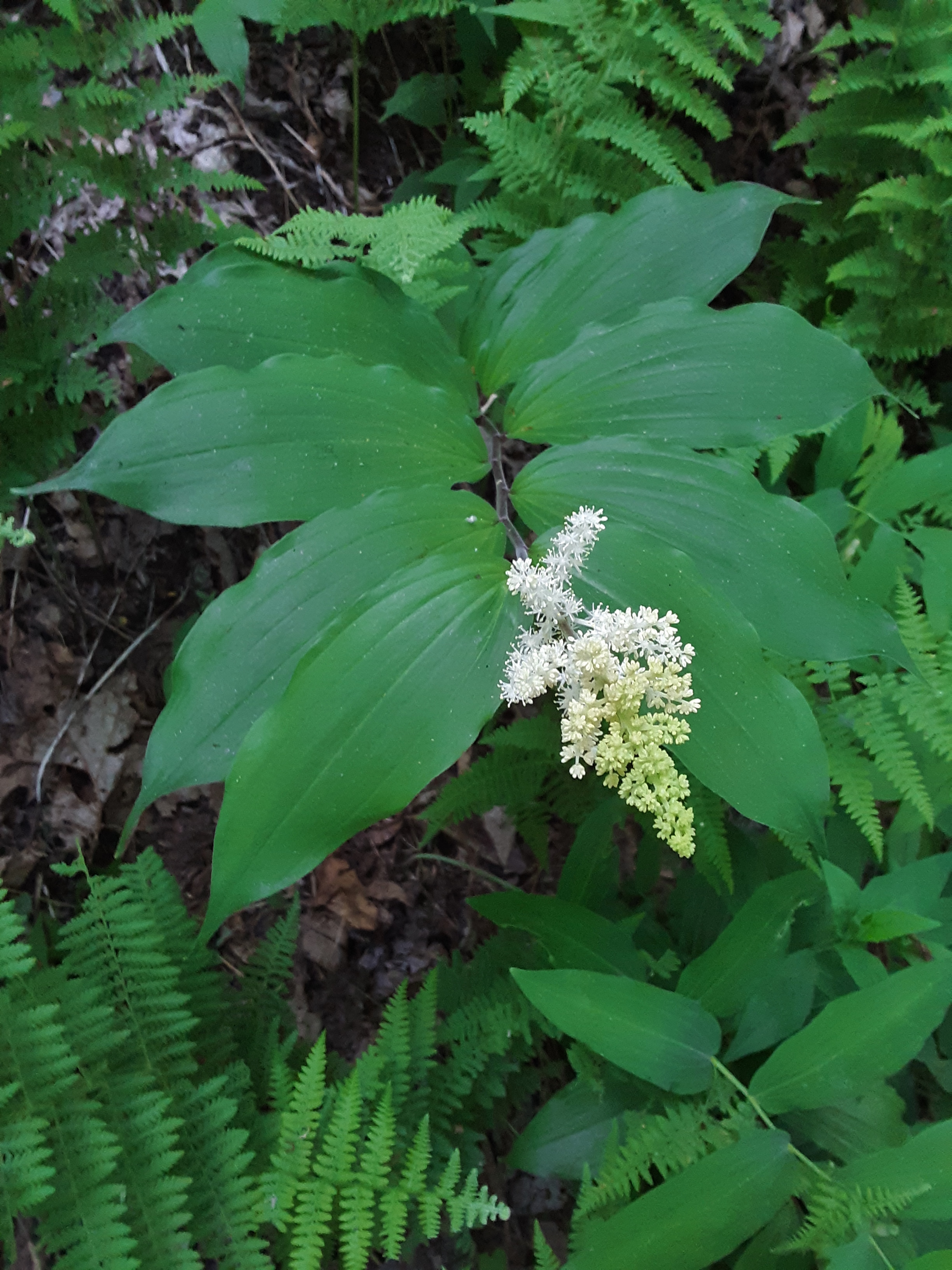 And here is False Solomon’s Seal for comparison. Notice the difference in position and form of the bloom. If they aren’t blooming, notice the the stems are different colors.