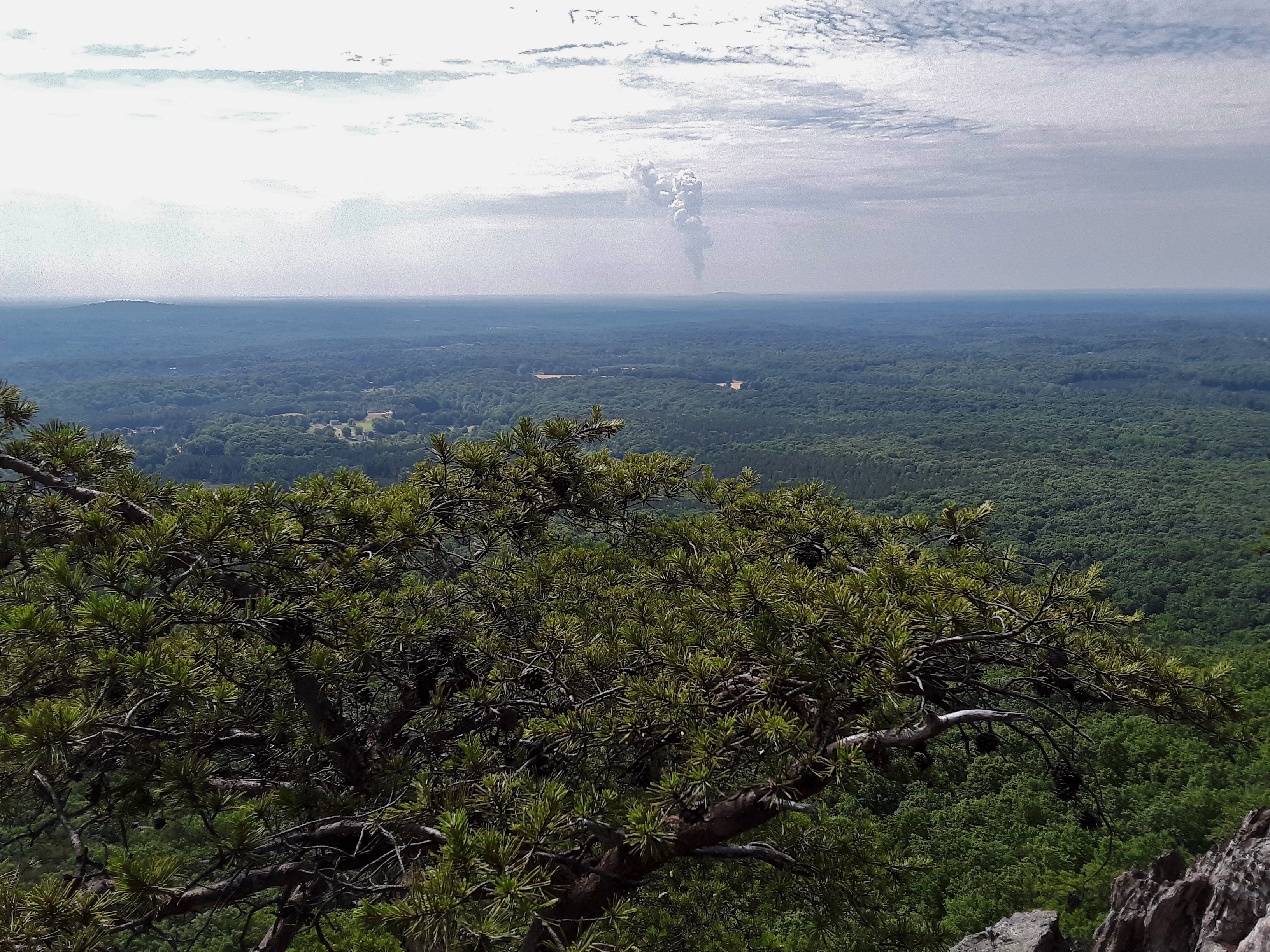 Off to the northeast is what I believe to be Marshall Coal Powered Steam Plant on the western shore of Lake Norman. It is a testament to how still and unstable the air was on this muggy day for the smoke plume to rise so vertically and high. There is a typical amount of haziness for a late Spring day in the Carolinas but not especially polluted since the power plant is over 30 miles away.
