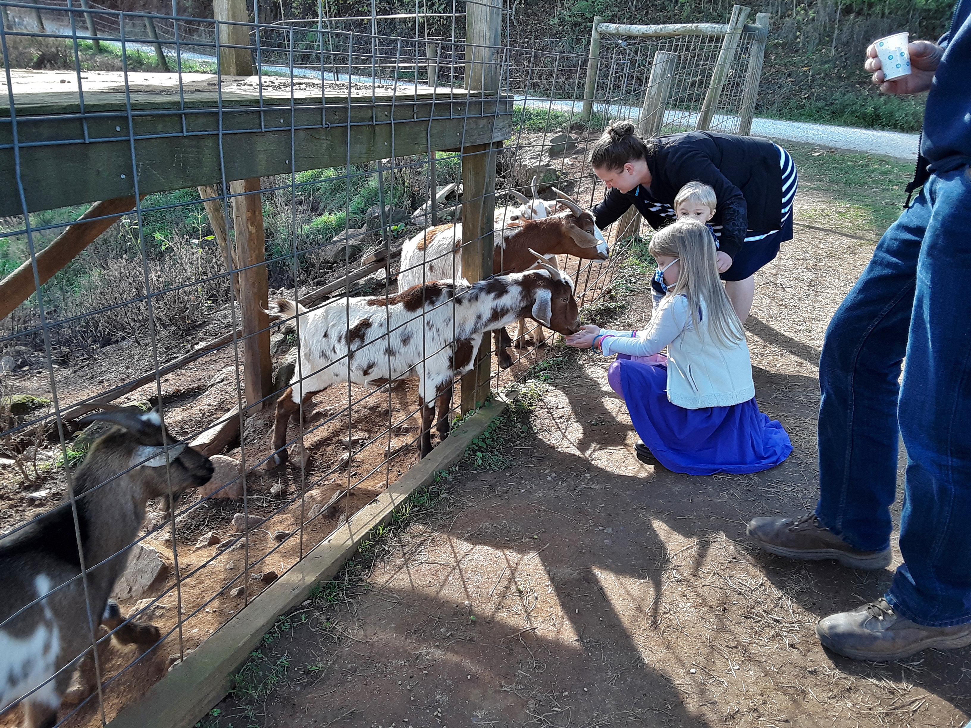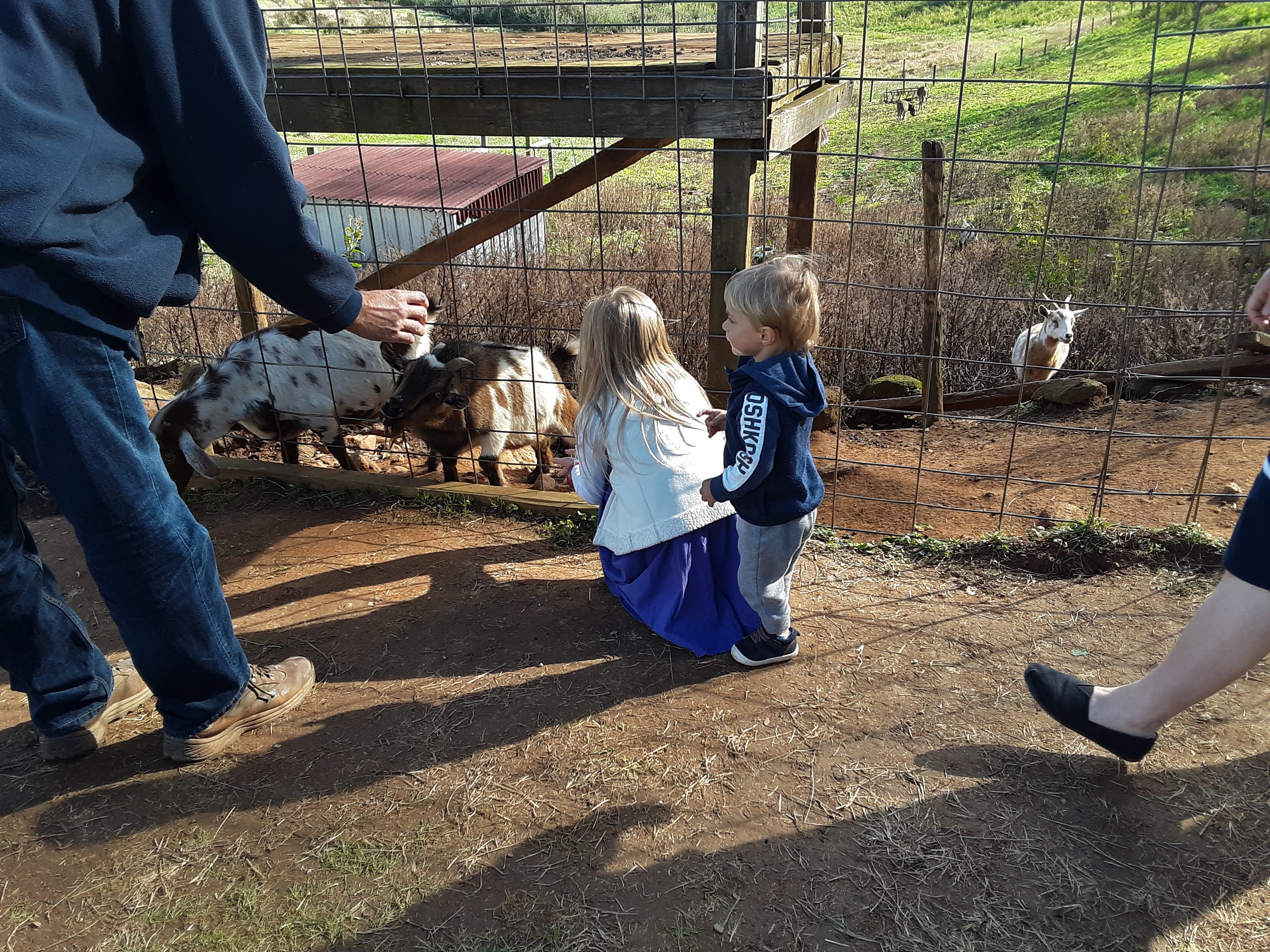 Little grandchildren are a big deal, posterity and all that. It is fun to watch them explore and learn. It was a little kindness, but the man in the picture who is unknown to us, gave the children feed to give to the goats. I hope that he enjoyed watching them interact with them as much as they and we did.