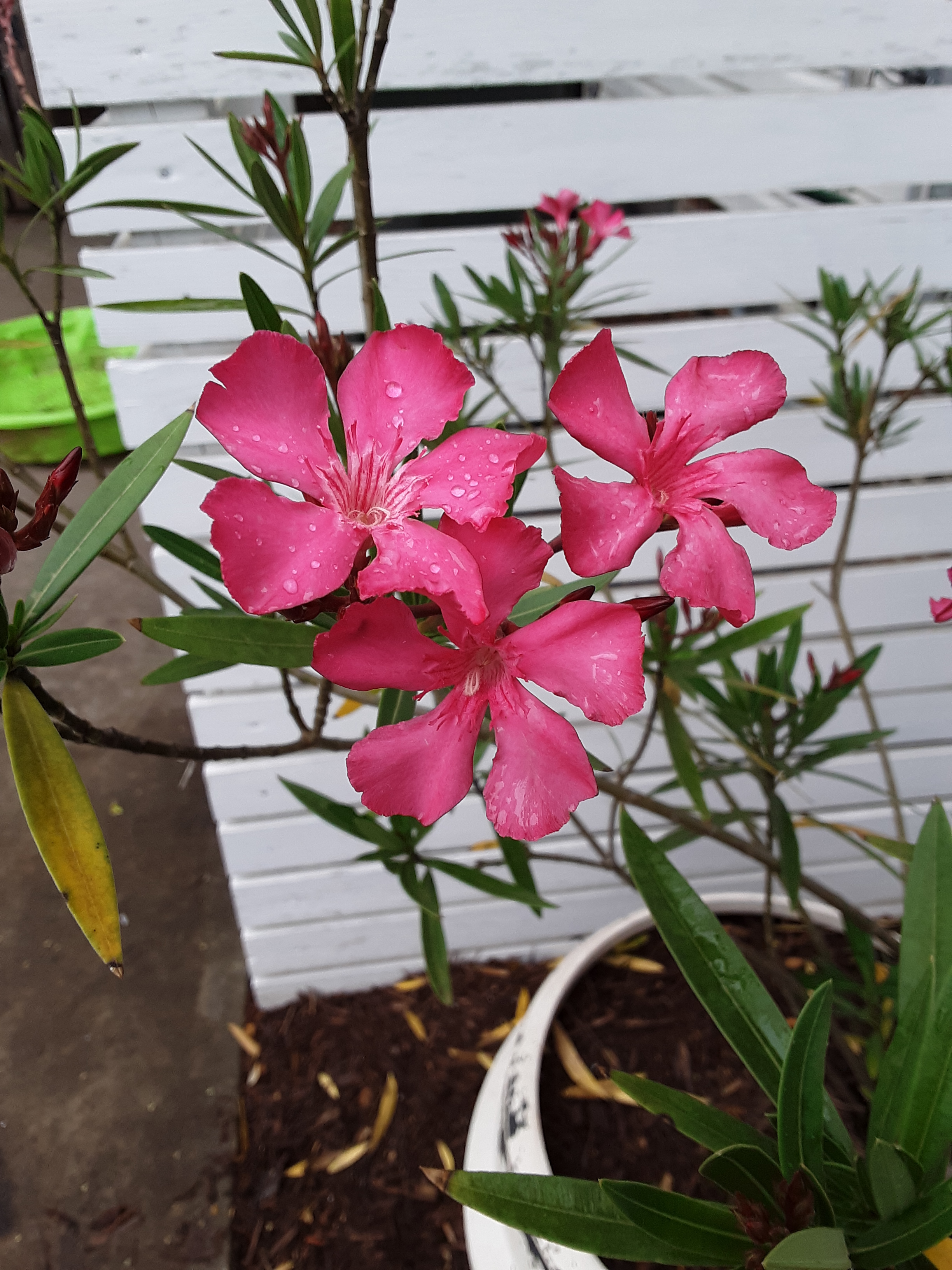 This flowering bush unknown to me is a great way to decorate in front of a garbage can fence. Functionality is great, but appearance is inviting. Extend this idea to God’s Creation. Ecologically self-replicating and self-cleaning and simultaneously visually inspiring and health-giving only begins to describe the depth of God’s gift to us of functionality and beauty in nature for which we should regularly give thanks and praise. Decks and such are only a vague reflection of that creativity.