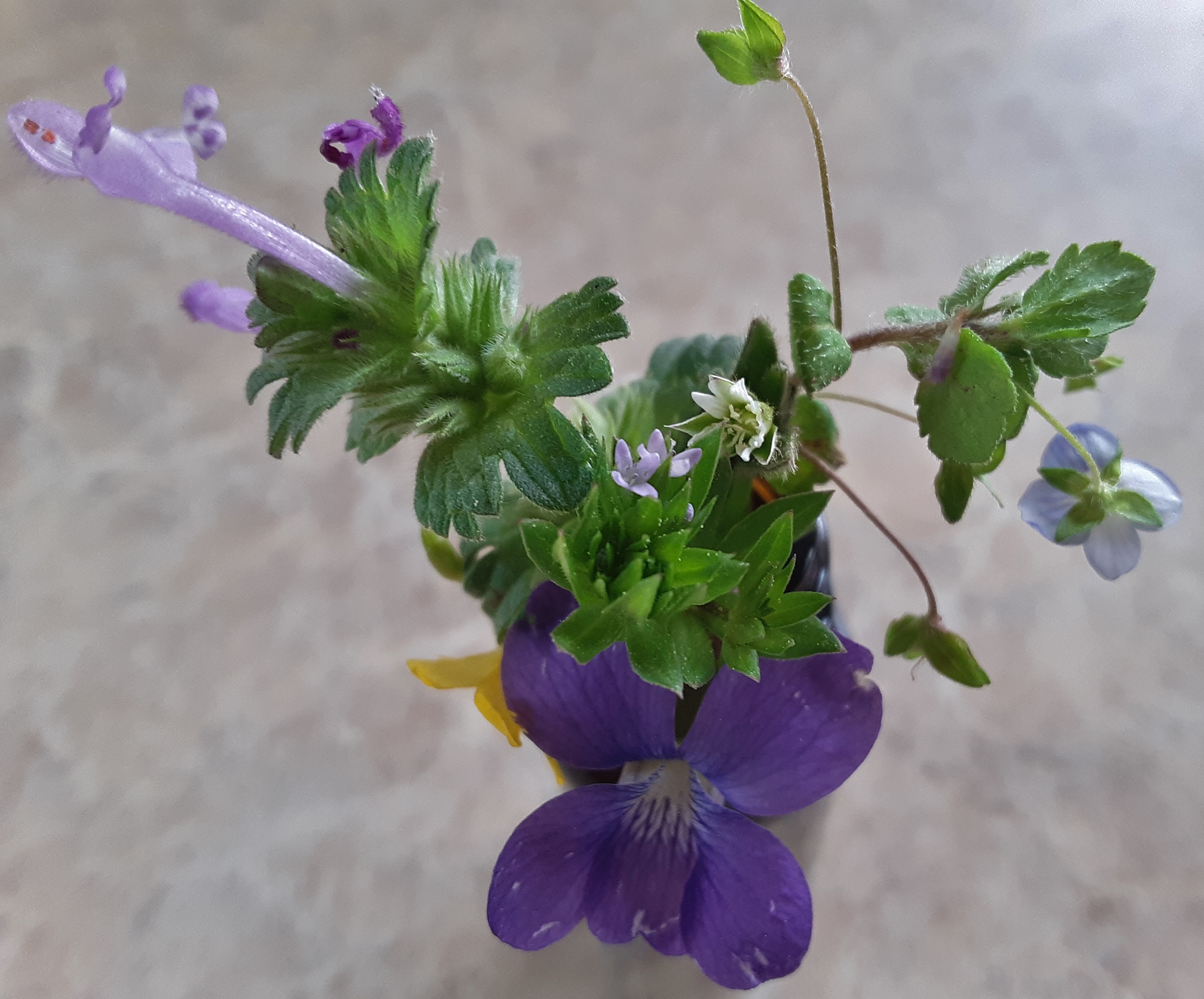 One sunny day not long ago I was resting and reading for a short period of time. After I completed the passage, a deep essay on theology, I looked up and called my wife’s name. The house sounded empty. I cruised through the rooms and she was not to be found. Then I looked out the window and there she was wandering around in the yard with her head down. I went out and made a comment about the beautiful day and asked her what she was doing. She raised up a hand grasping small flowers, most people would call weeds, and said, “They cover the yard, and they are so beautiful.” She had three different flowers. I began the search, and we found seven different types of flowers, some hardly as big as the head of a pin, but covering the yard with blues, yellows, violets, and wee little whites. All the detail for male and female flower parts and nectar production and beautiful little petals. How much of God’s beauty goes unnoticed because we are looking but not perceiving, looking inward and not around us, looking to find fault rather than encouragement, or looking to show off rather than being shown to? So small, frequently unnoticed, but declaring God’s glory anyway, quietly turning heavenward.