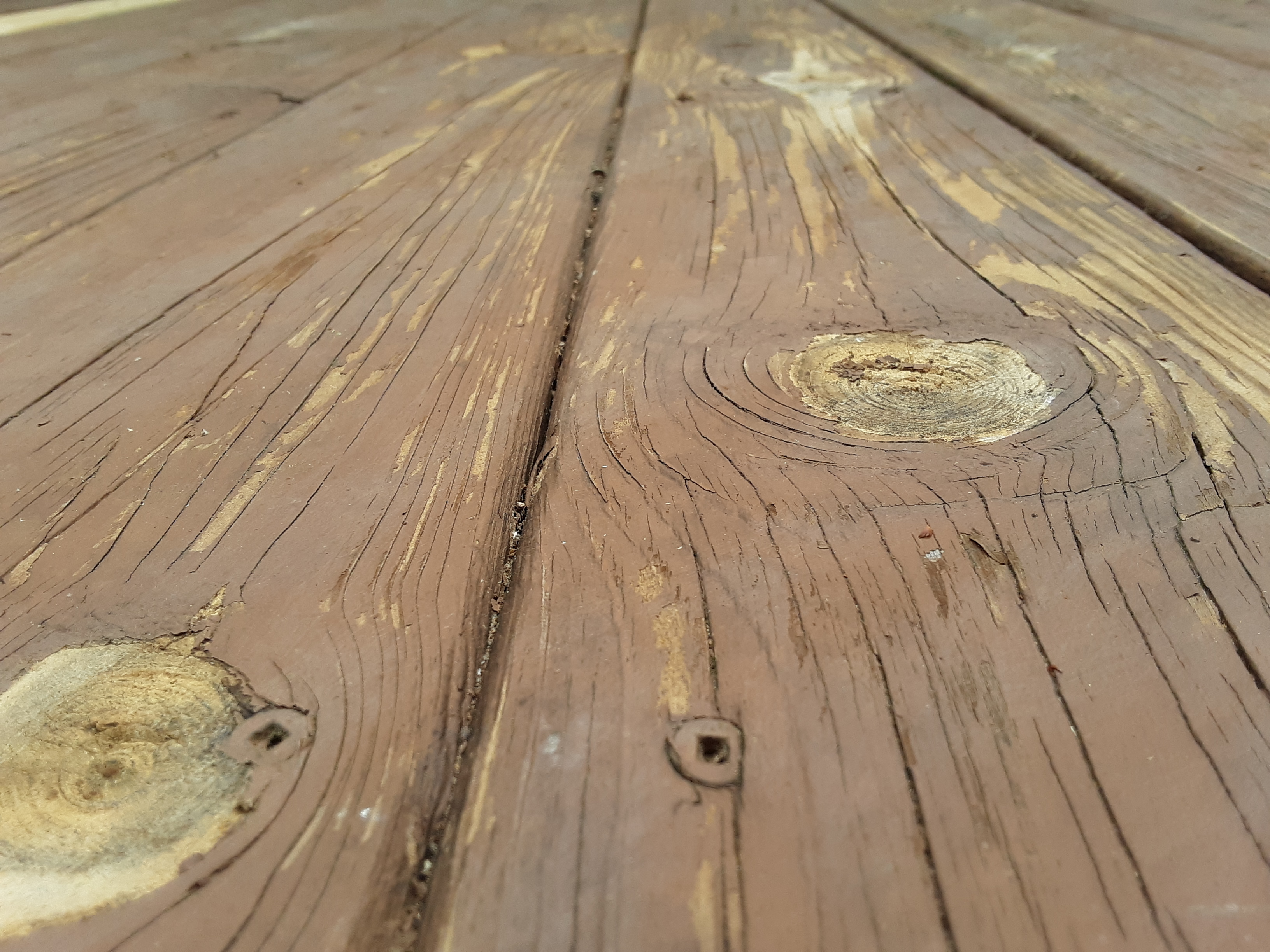 So, time consuming and tedious as it was, I got down with my knee pads and wire brushed and whisk broomed the boards.