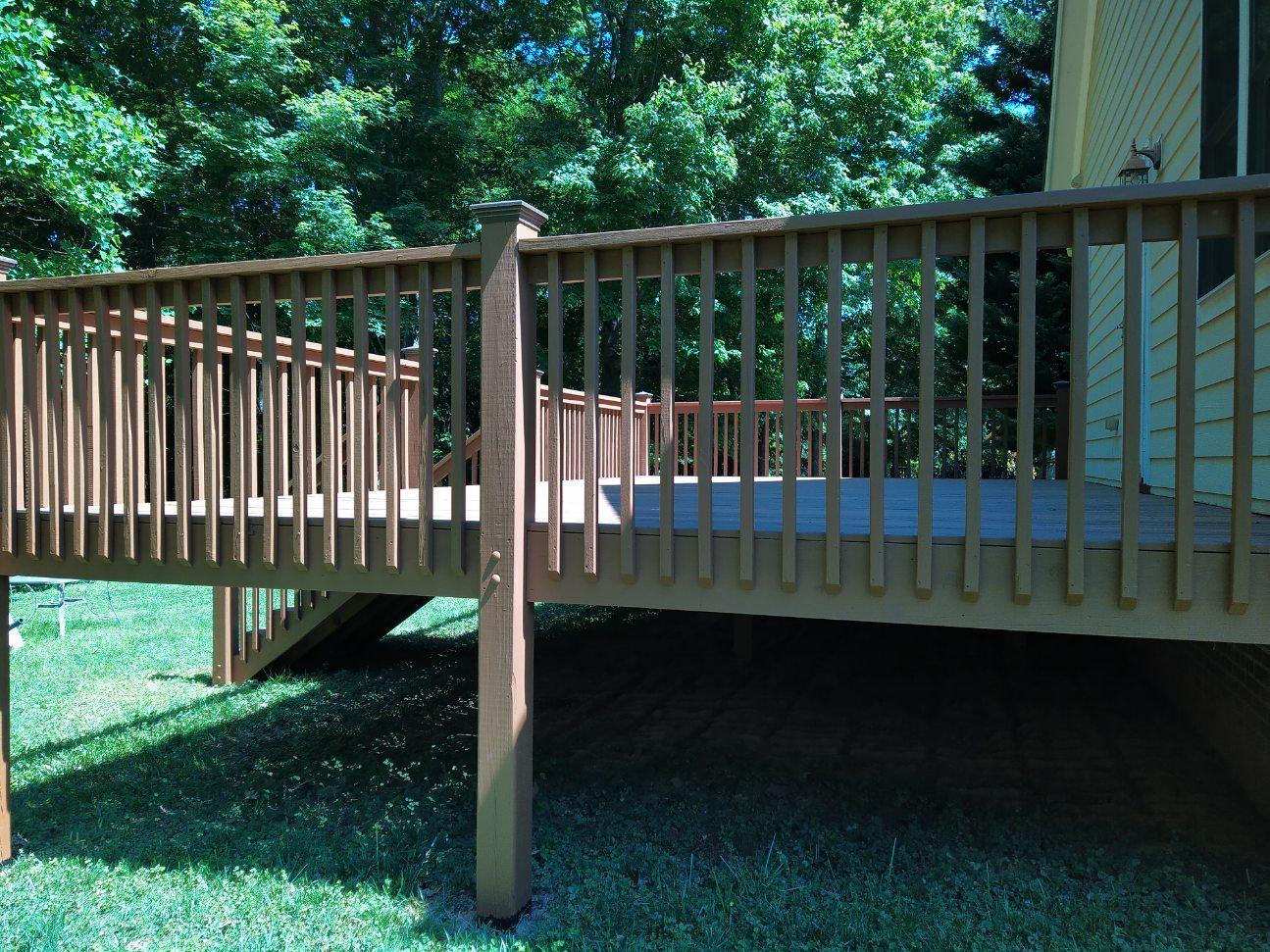I feel like the end result looks like new and will last another good many years. I suggested to the owner that she treat the top surfaces yearly to prevent the deterioration that was happening. With a roller and stain the decking and top rails would take no more than 1 1/2 hours to treat. The look and longevity will be satisfying.