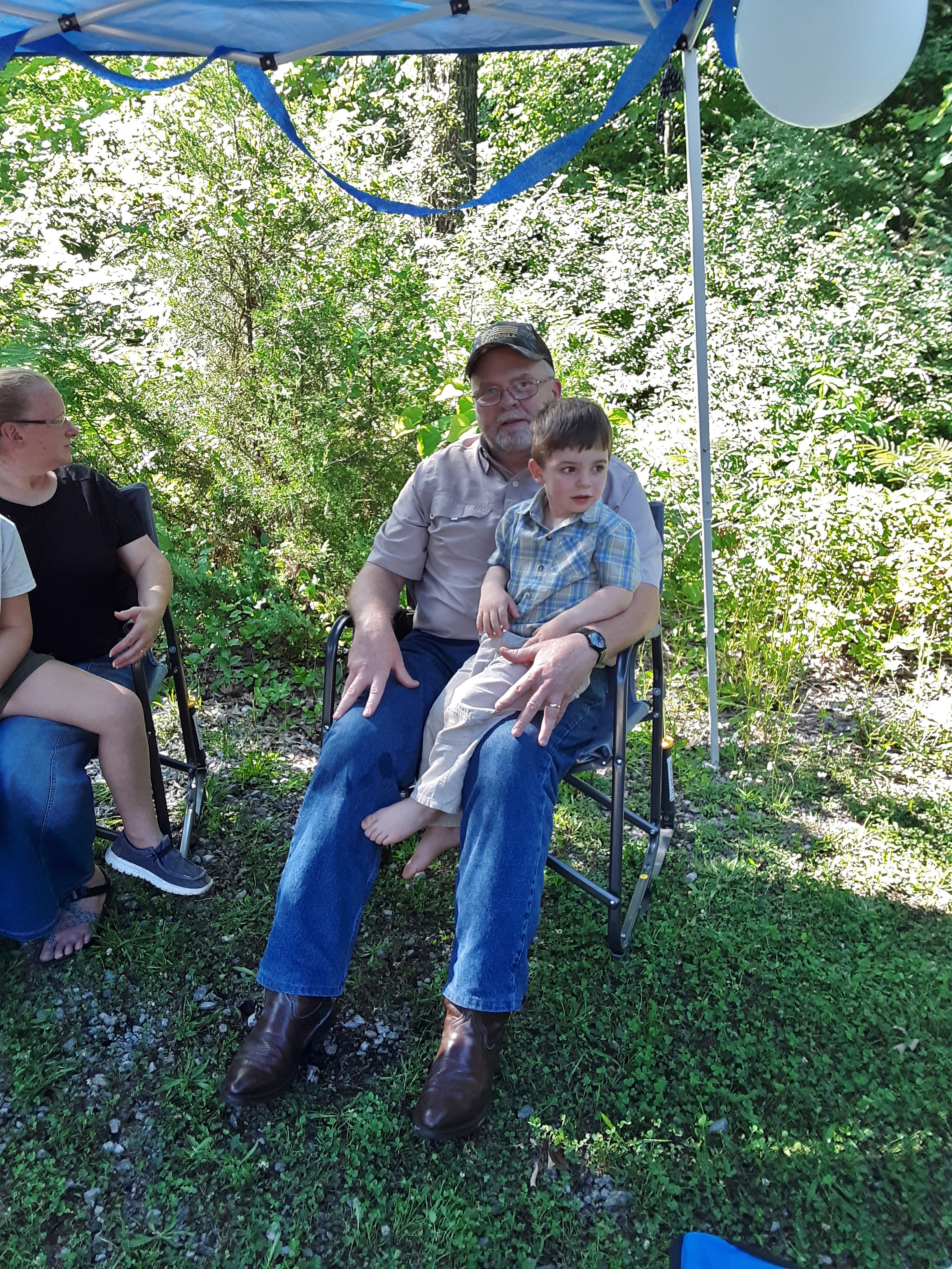 After returning to my son’s home we visited for awhile before departing to my oldest brother’s house for the evening. I was focusing in on my grand-daughter, who is the first second daughter in four generations among the male progenitors. Speaking of whom, the party, reunion, hike, and visit after a week of laboring has rendered him tired. We were all ready for some rest, but content with time we had to visit.