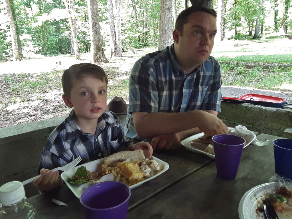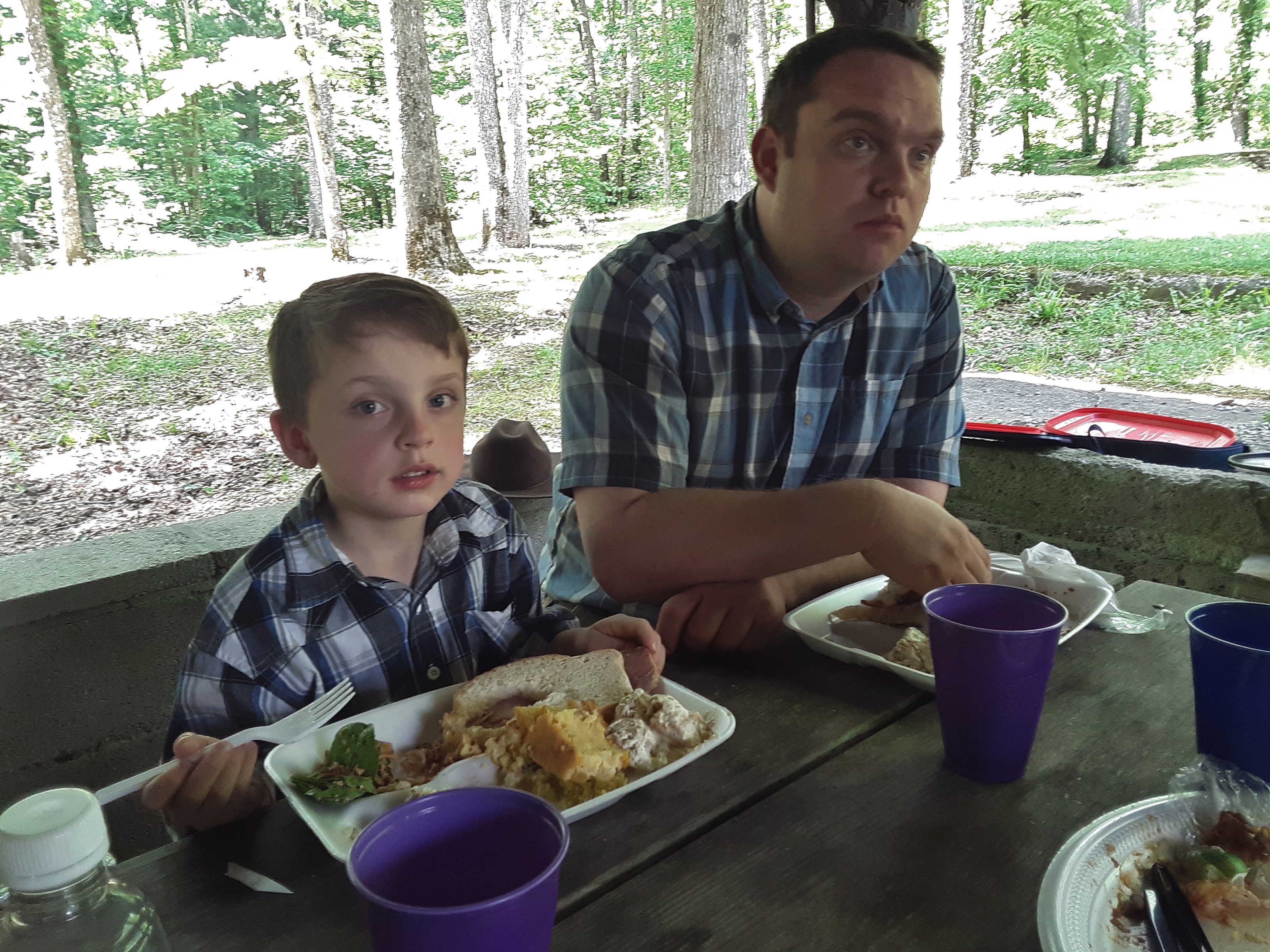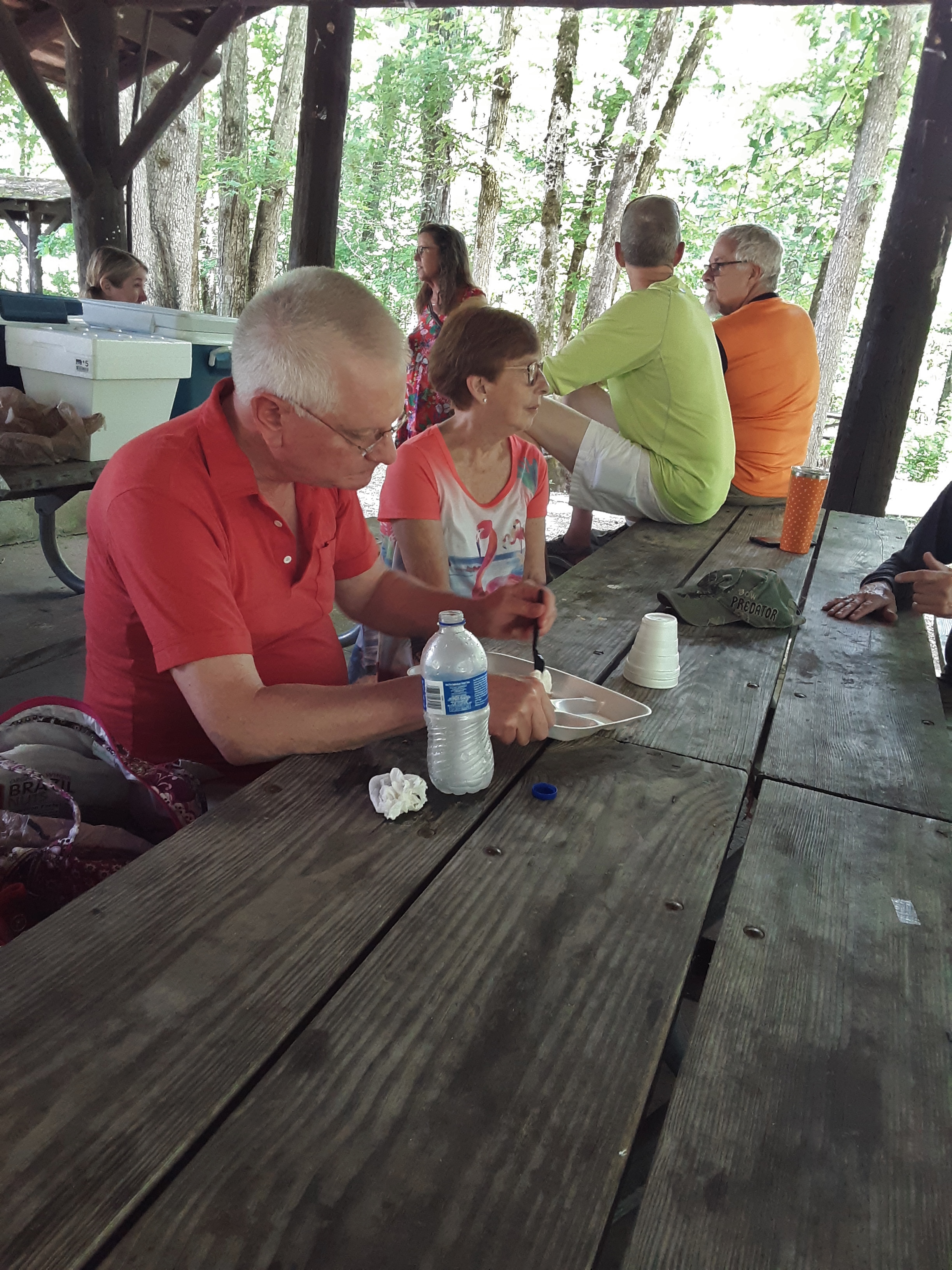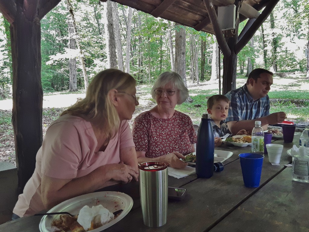 The family gathered for the reunion at Cumberland Mountain State Park on Sunday afternoon after church. Eating and talking is what you do at a reunion. Most of the participants are past playing games.