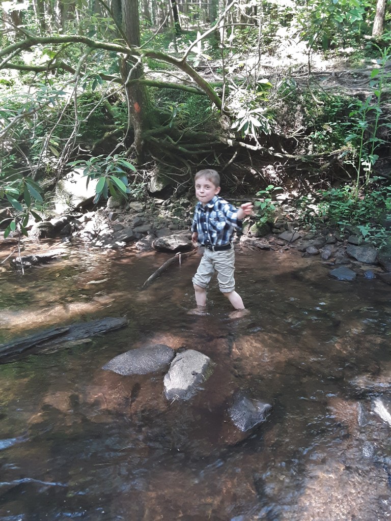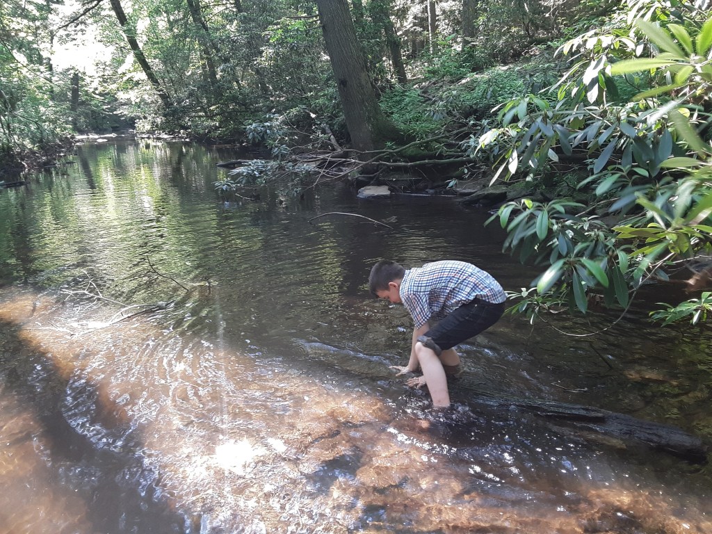 This is fun, grandpa, but the creek water is only cool and not cold as we expected.