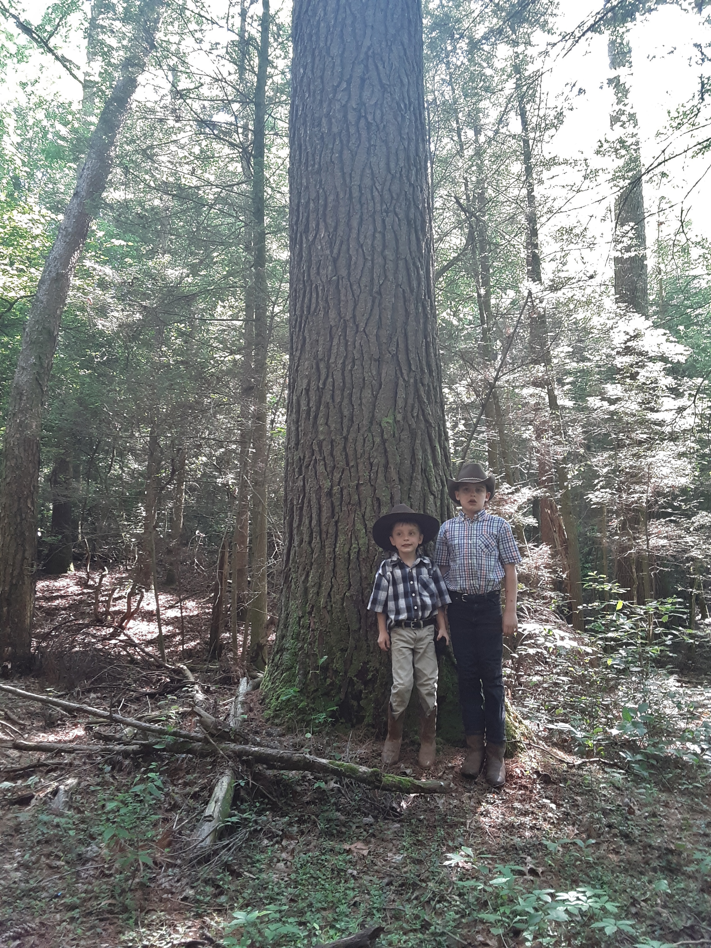 I had the boys in their cowboy hats and boots stand by a healthy Eastern White Pine.