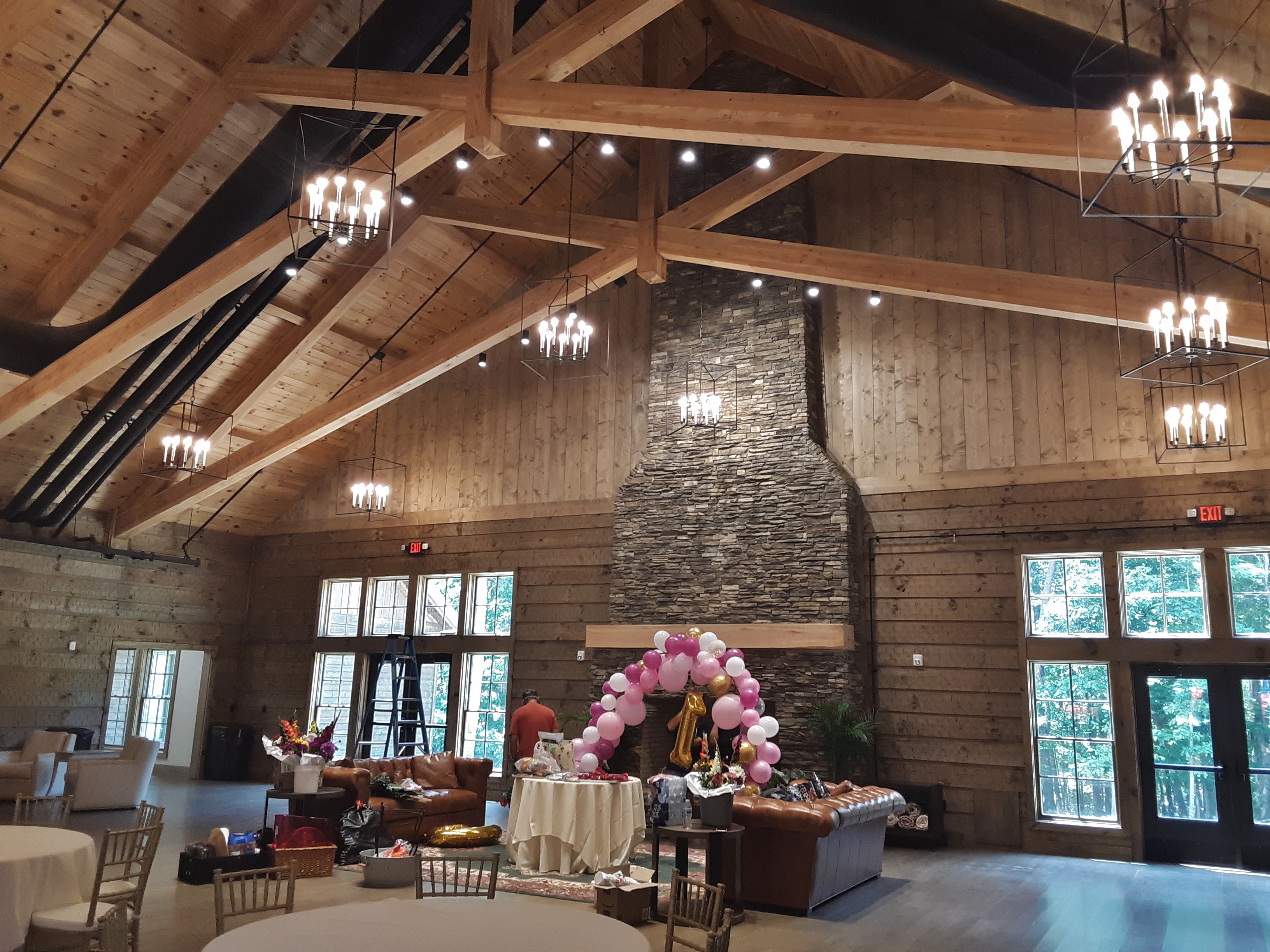 It pretty well dazzles the moment you enter the hall, and there is a kitchen, bathrooms, and dressing rooms in one wing and offices and conference rooms in the other wing. Here you see a birthday party being set up.