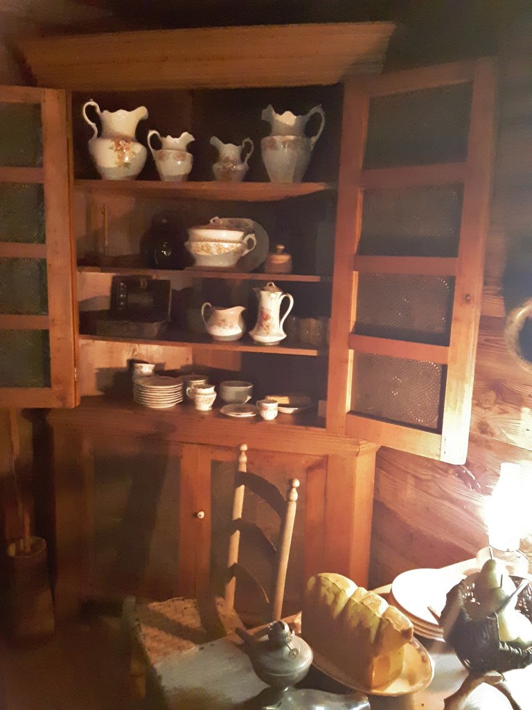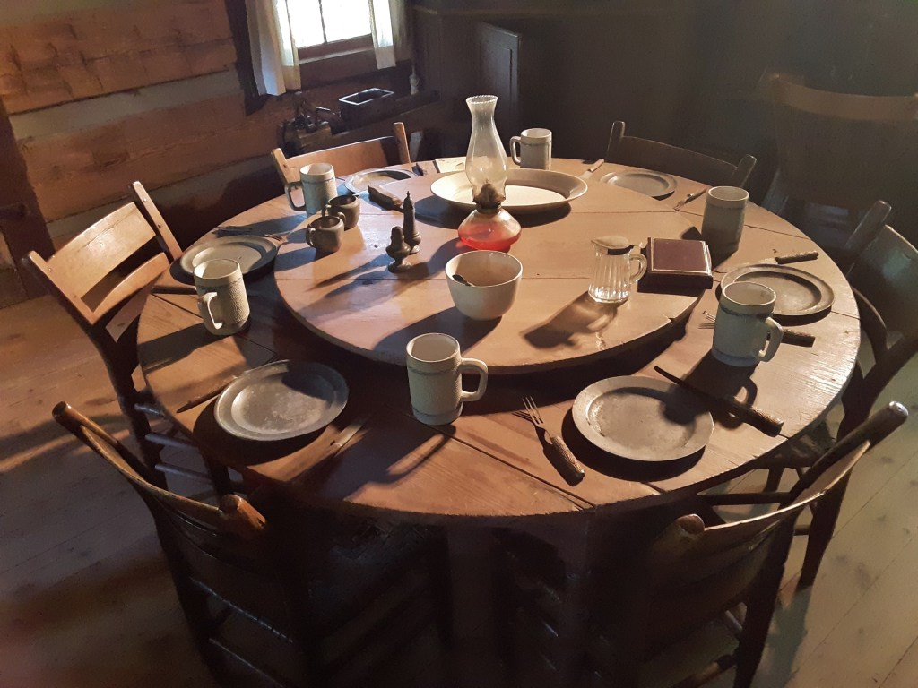 The last cabin that we went into was furnished as a doctor’s abode. It had matching horn “silverware” and a grand Lazy Susan at table.