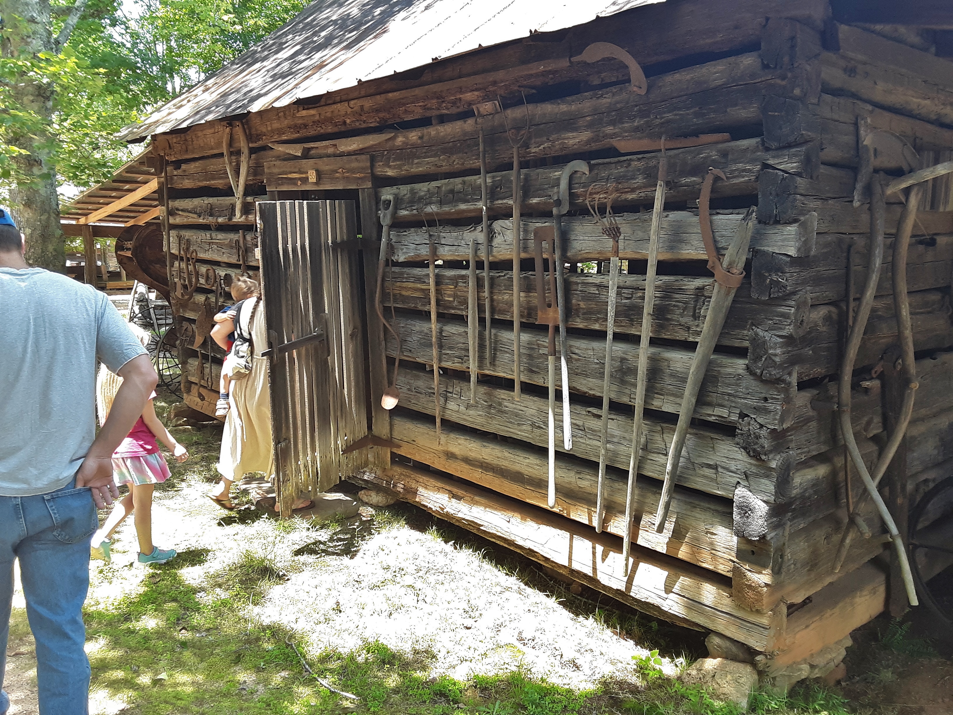 The cabins, many and varied, are furnished in even more varied ways. Some, to be sure, are furnished as the homes they originally were and similarly to their actual use according to interviews with former occupants. But others were furnished as workshops and businesses which they were not. This increases the interest in their contents and plays into the one day reenacting festival every Fall.