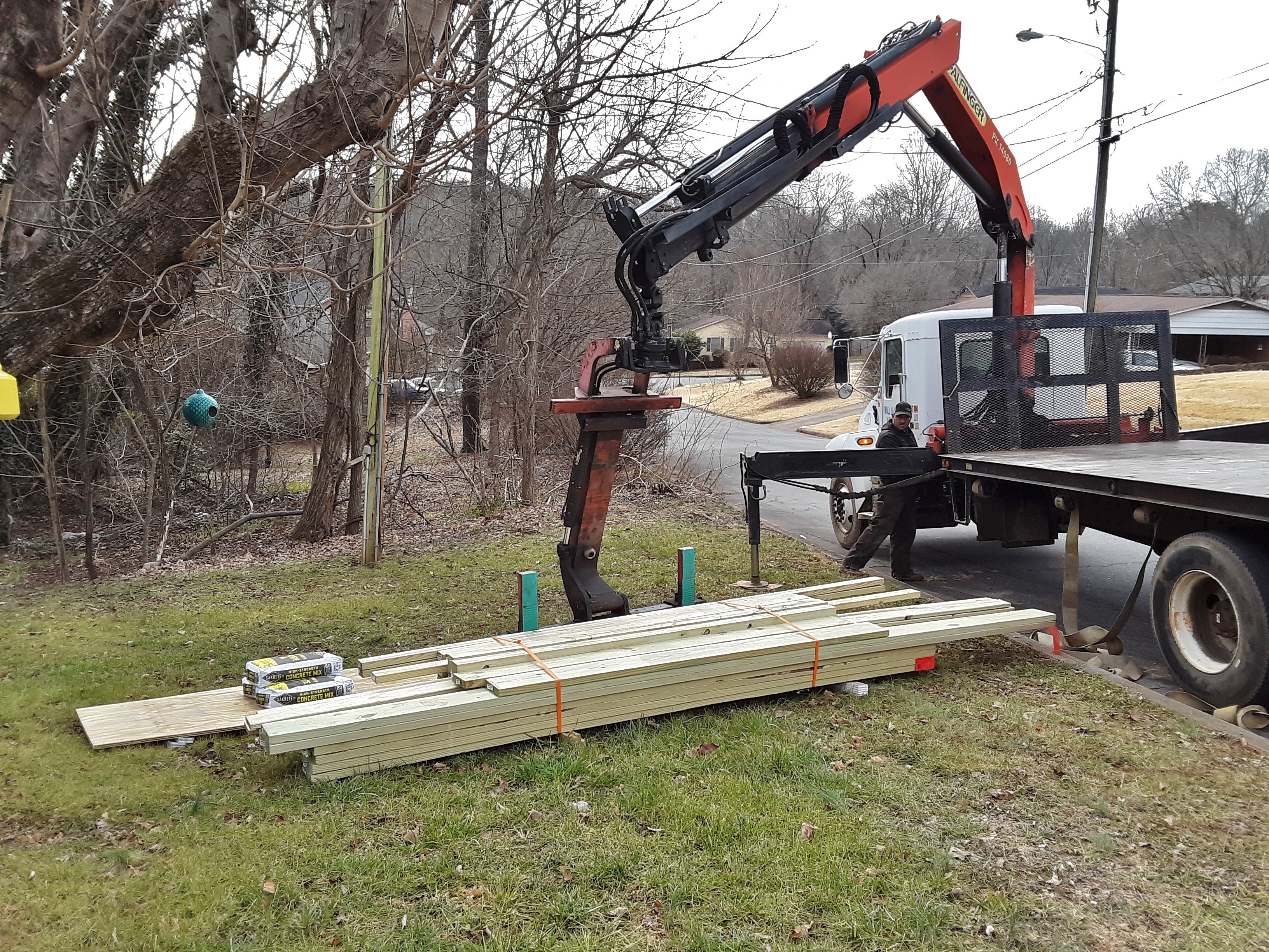 Because the winter was very wet, the truck could not bring it to the backyard, even though there was access. I hauled two or three boards at a time on my shoulders the next day.