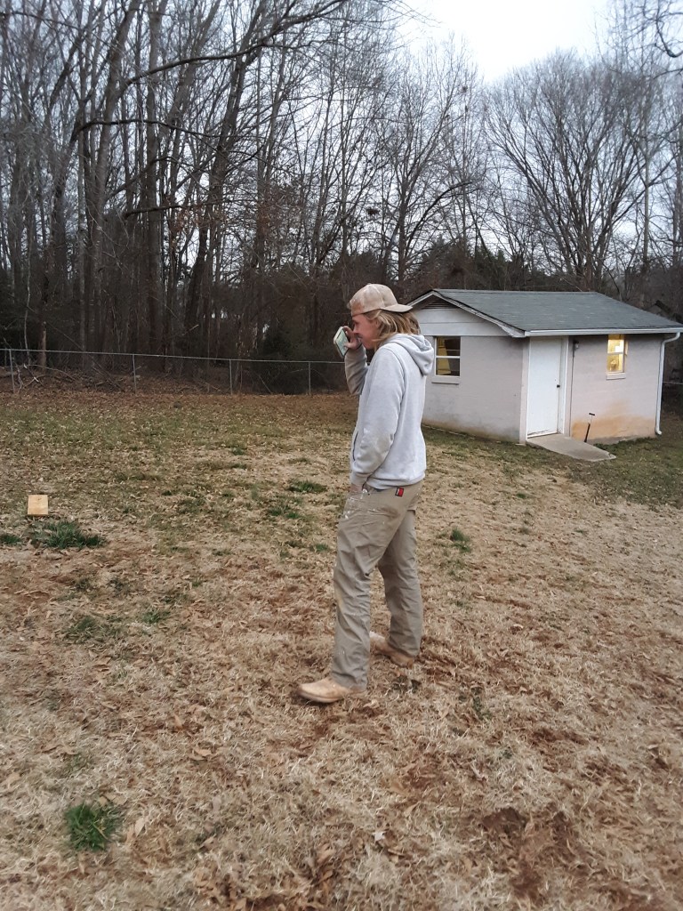Can you guess where the zipline will attach? Diagonal City! Leaned against the shed are the 3/4″ treated plywood for the climbing wall.