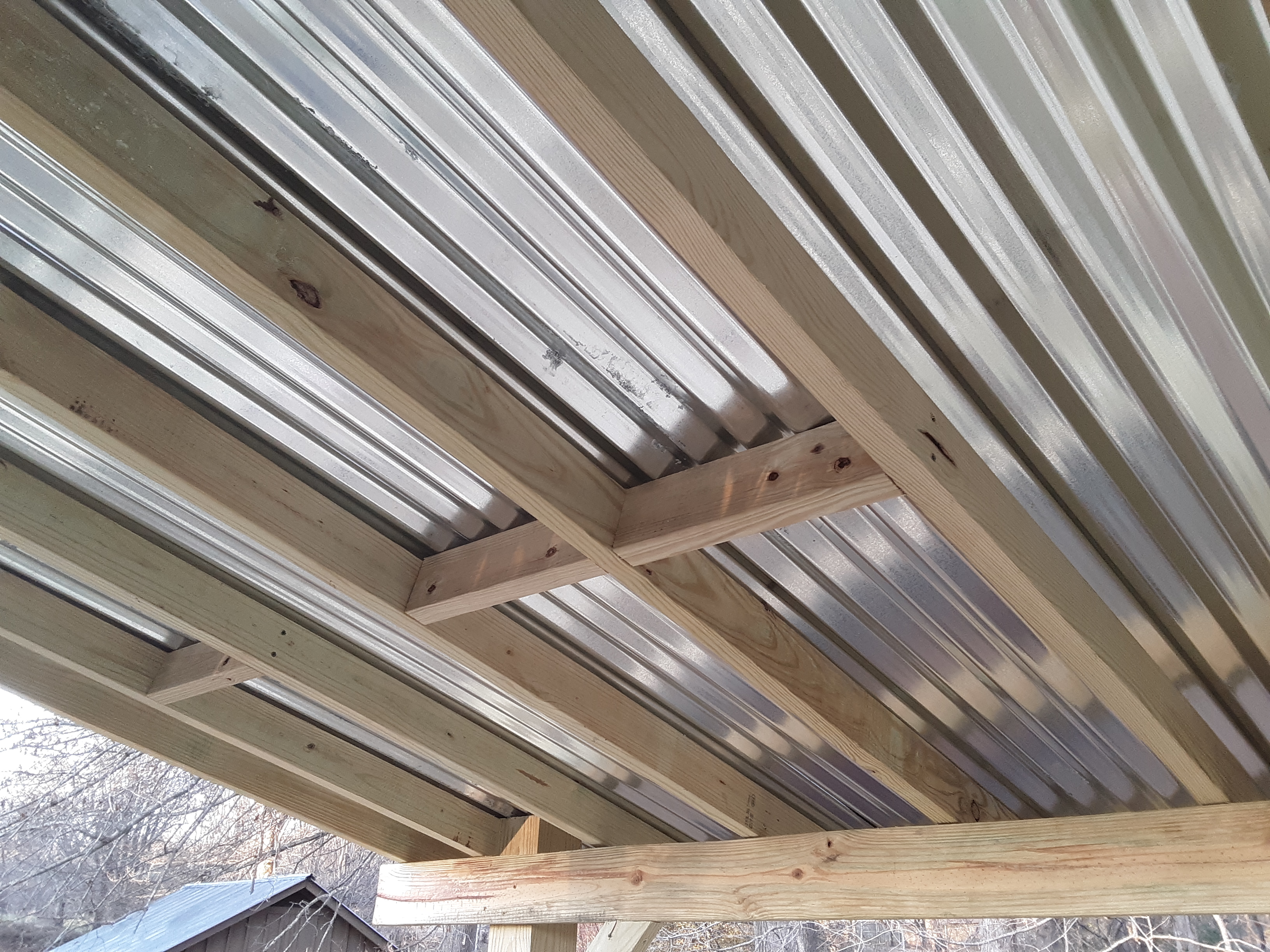 Some days were longer than others and some saw more progress. The floor was satisfying and very useful for further progress. Hanging out on an extension ladder leaned against a single post putting up long boards is difficult for one person.