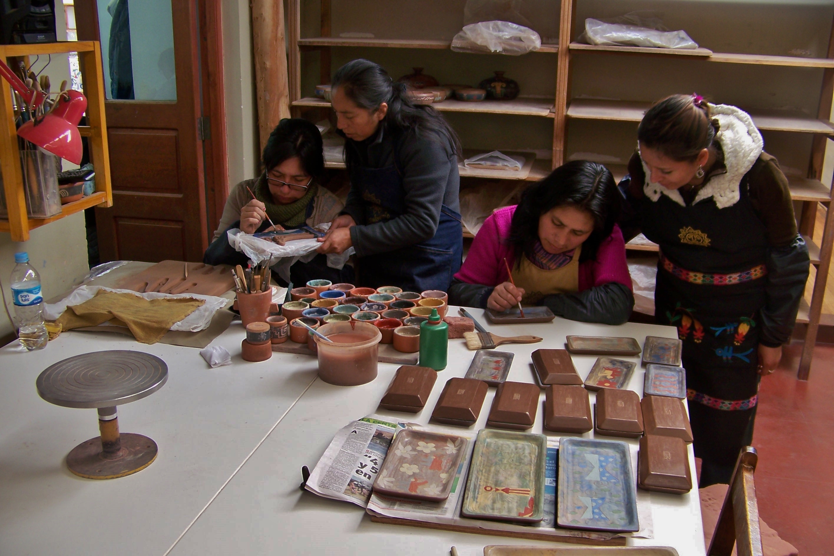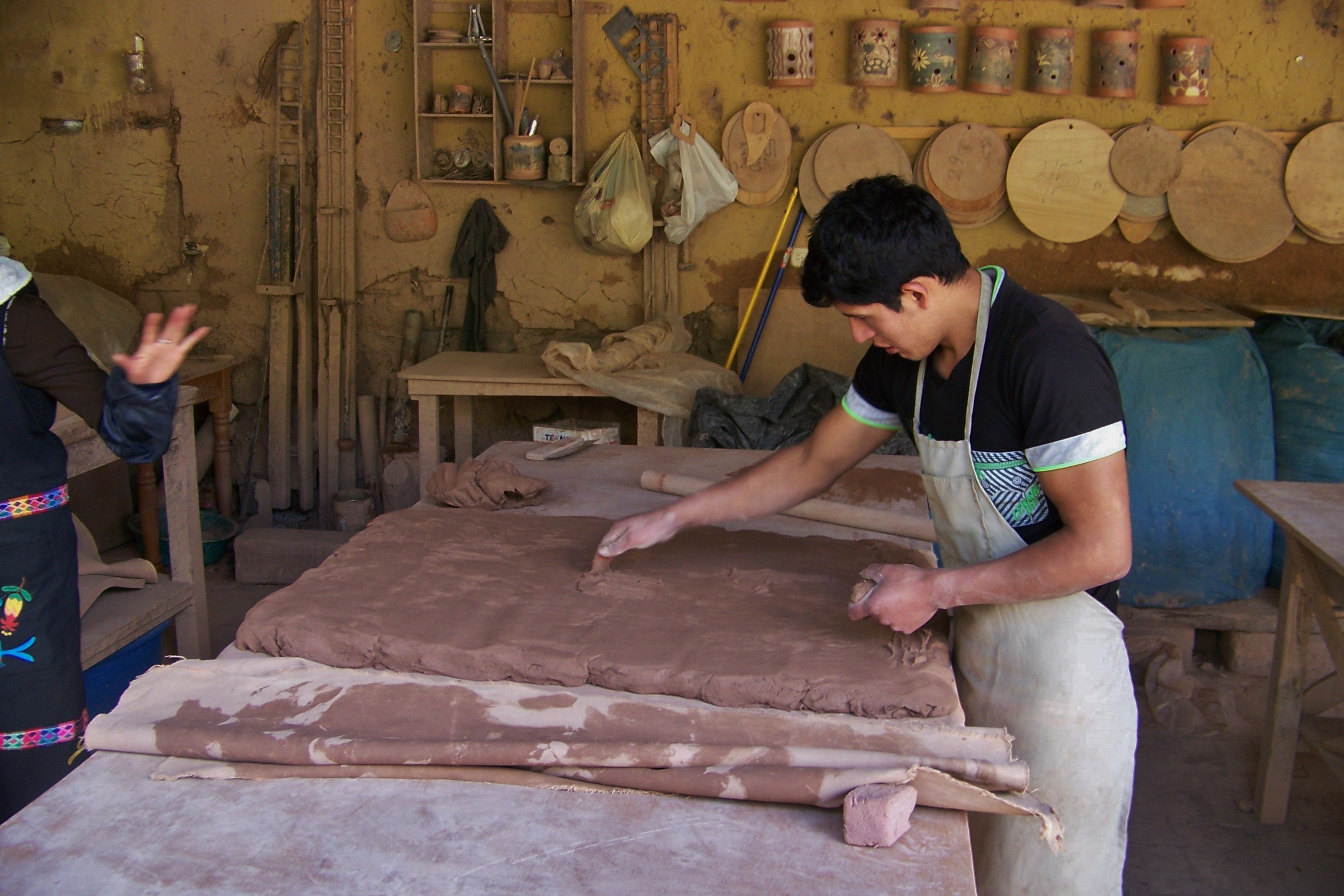 We toured the Seminario Ceramicas in Urubamba of the Sacred Valley of the Incas. The head potter, Pablo Seminario, along with his wife the head painter, Merilu Behar, developed a style of glazed and decorated pottery that has elements of ancient Peruvian cultures and modern stylistic exploration. The style was further developed by the isolation necessary for survival during the Shining Path insurgence of the 1980’s. One motif that the potter declared to me that he finds ever new is the shape of the arrowhead. As he said, “It was a tool for gathering food…is similar to the water drop or a leaf”. So Pablo continues to explore splashes of modern creativity mixed with hints of ancient continuity.