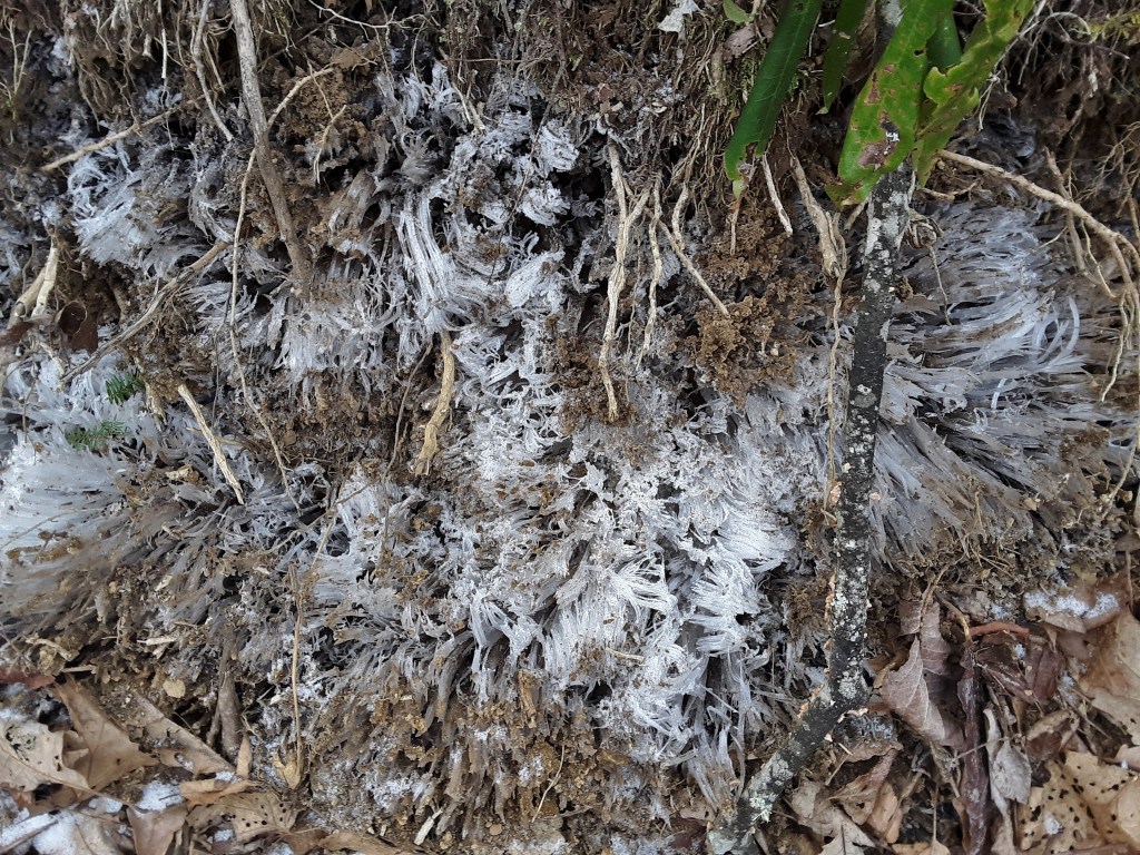 If you have not seen it before, the lacy frost heave of bare soil with excess moisture is even odder to see.
