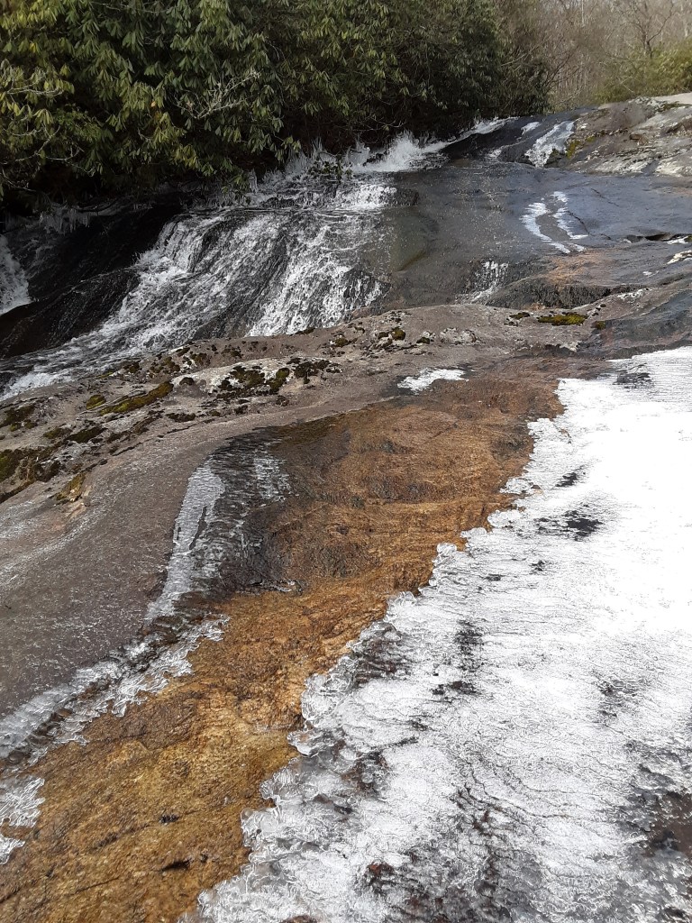 A full week of consistently cold temperatures would render this cascade flowing under the ice. The edges were icing.