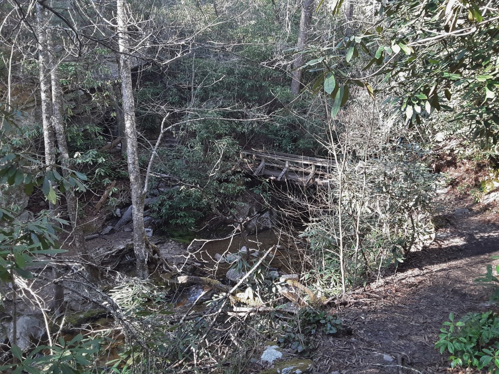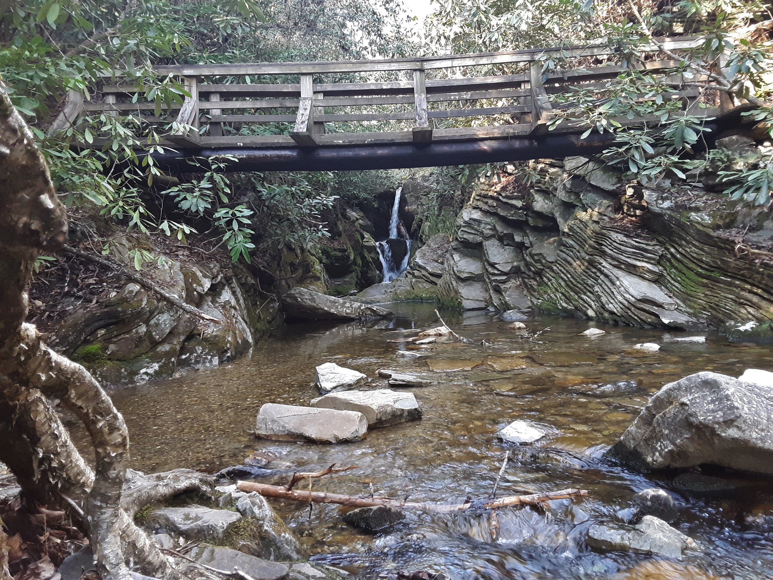 In the middle of the bridge, voila’, Dugger’s Creek Falls.