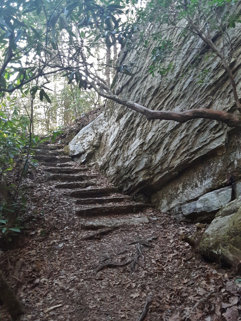 On the far side of the bridge the steps go up between the boulders in such an inviting way.
