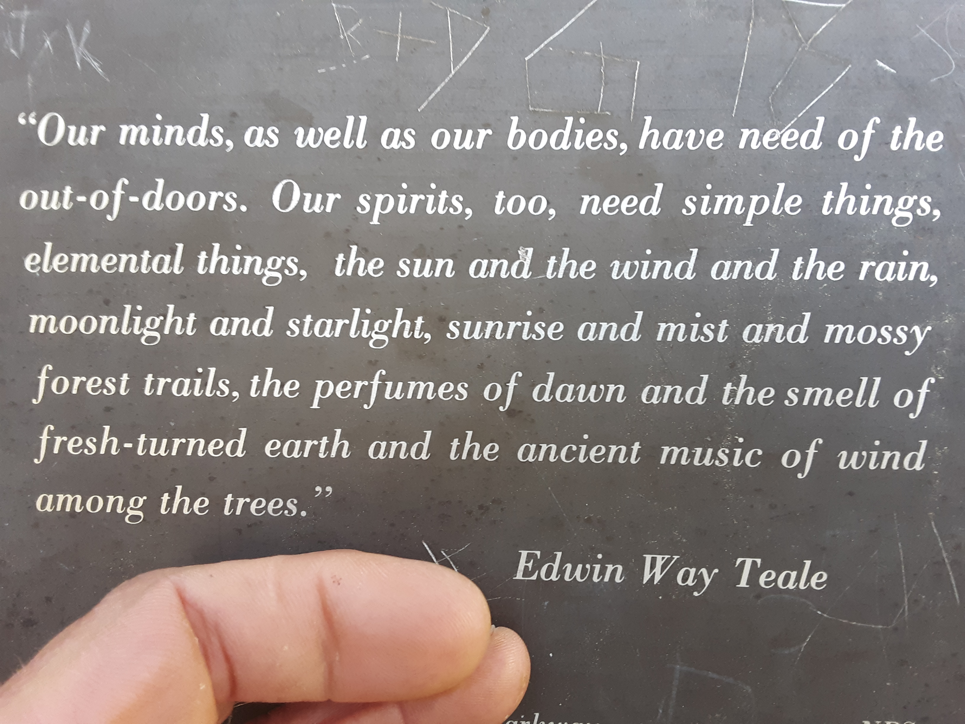 On the beyond the bridge side of the trail are several plagues with quotes. The following was apt to my present situation.