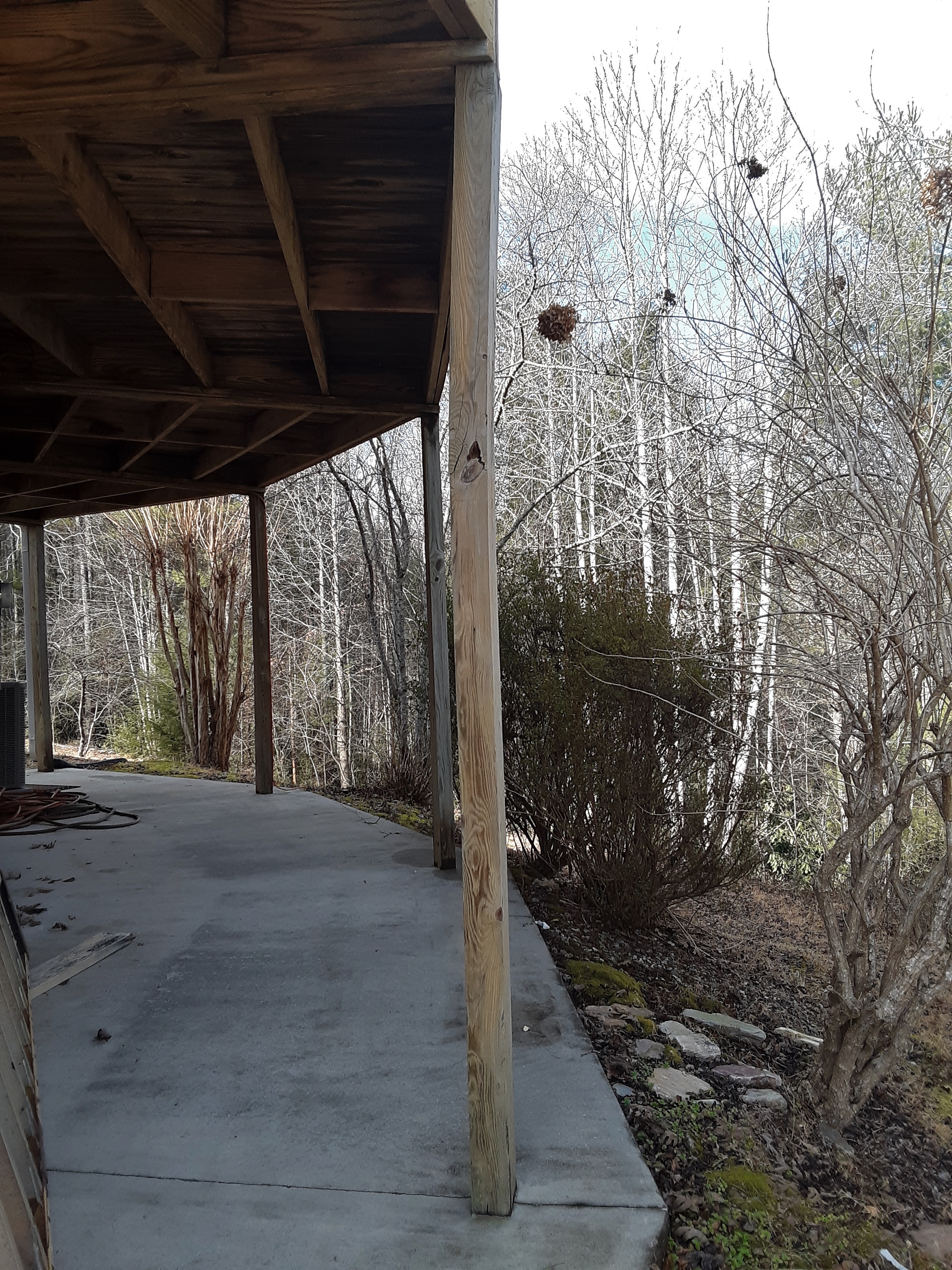 The next step was cutting the post off and rigging a way to pulled it out of the concrete slab. The slab was added after the house and deck were built, so they poured it around the posts. My car and truck jacks worked slowly but surely.