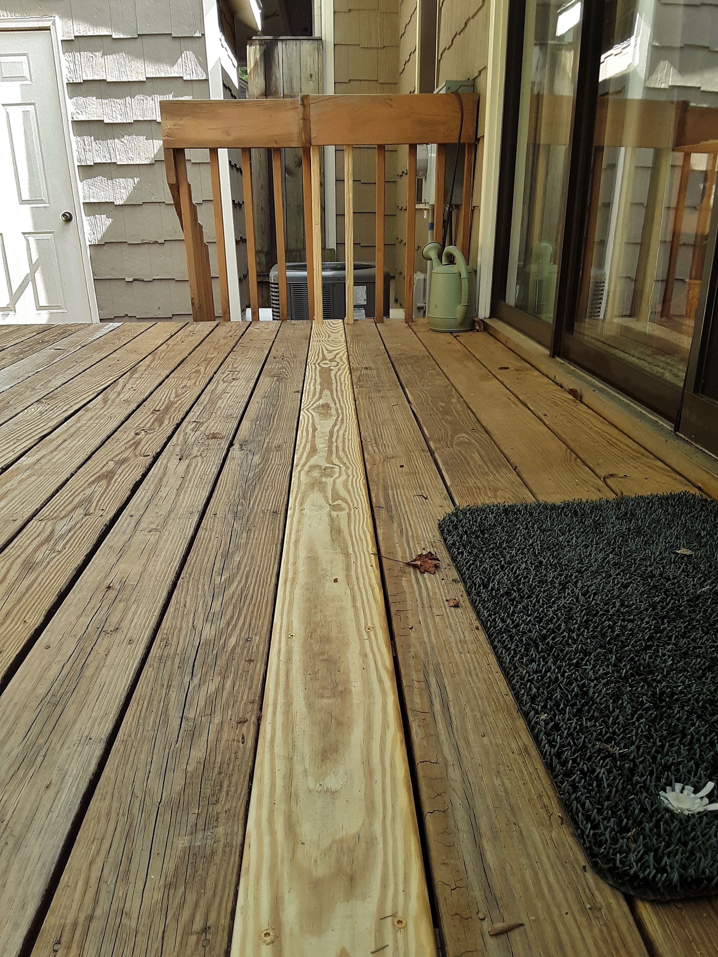 Rarely do I complete a deck repair in one day, but this job was that small. There were two decks, the main 12 x 12, and smaller 4 1/2 x 10. The larger one had three boards with developing rot, a quick fix. I also replaced three balusters there.